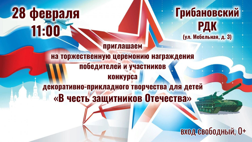 Торжественная церемония награждения победителей и участников конкурса декоративно-прикладного творчества для детей «В честь защитников Отечества»