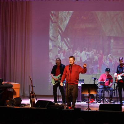 В зрительном зале собрались члены семей мобилизованных и участников СВО, представители войсковой части и органов местного самоуправления, ребята призывного возраста, почетные граждане, все, кто любит творчество группы.