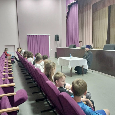 В Грибановском районном Доме культуры состоялась беседа благочинного Грибановского благочиния, иерея Ярослава Манохина, с детьми и подростками из Грибановского центра образования имени Г. Н. Троепольского.