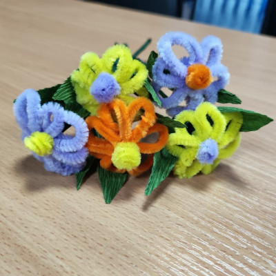 Для такой поделки дети использовали разноцветную синельную проволоку и клей.