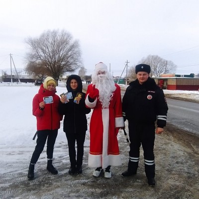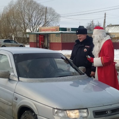 В преддверии Нового года Грибановский районный дом культуры и Отделение ГИБДД провели для водителей транспортных средств акцию «Дед Мороз спешит поздравить!». Инспектор ДПС Дмитрий Олегович Подколзин напомнил водителям о необходимости соблюдения ПДД, особенно на длительных новогодних праздниках, а Дед Мороз поздравил всех с наступающим Новым годом и вручил открытки и сладкие подарки.