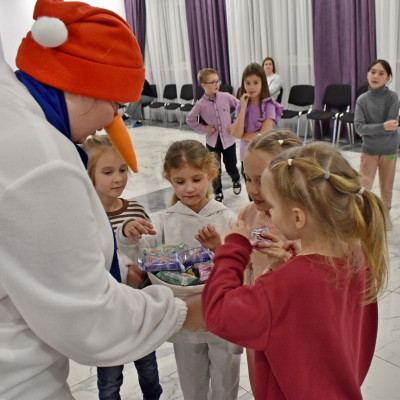 Верные помощники Деда Мороза, озорные Снежок и добродушный Снеговик, вместе с ребятами устроили настоящий праздник. Они участвовали в веселых подвижных играх, заряжая всех вокруг позитивом.