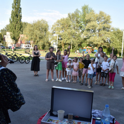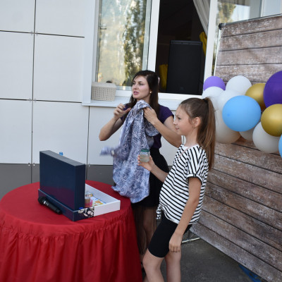Для детей была подготовлены увлекательные подвижные игры, конкурсы и разнообразные фокусы, ребята должны были пройти все испытания и попасть в «Школу чародейства и волшебства».