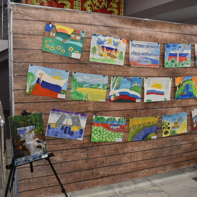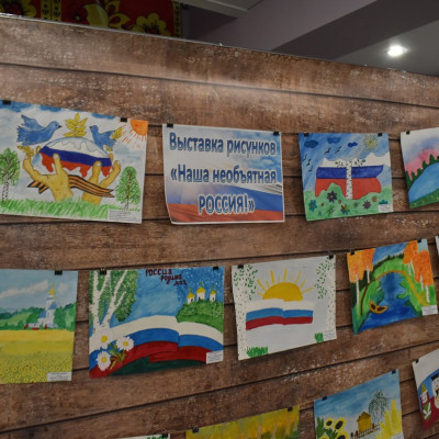В фойе Грибановского районного Дома культуры открылась замечательная выставка детских рисунков под названием "Наша необъятная Россия!".