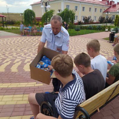 Ребята проверили свои знания в области правил дорожного движения, медицины, дорожных знаков, культуры поведения в общественном транспорте, поиграли в тематические игры и побеседовали с начальником отделения ГИБДД ОМВД России по Грибановскому району Дмитрием Сергеевичем Тапилиным и инспектором ДПС Дмитрием Олеговичем Подколзиным. Сотрудники ГИБДД напомнили ребятам о важности соблюдения правил дорожного движения и угостили мороженным.