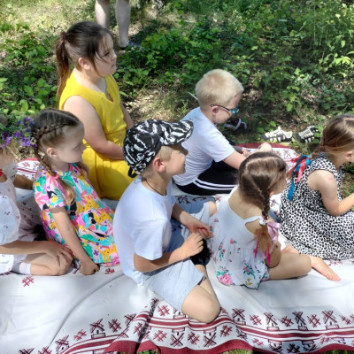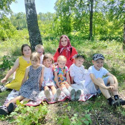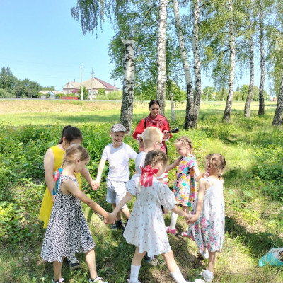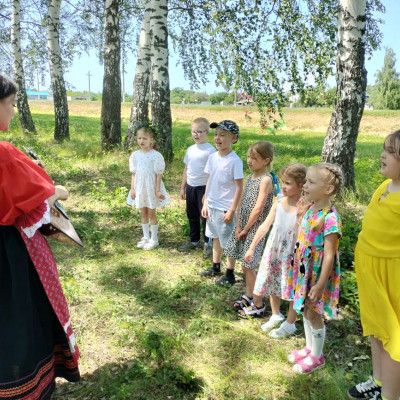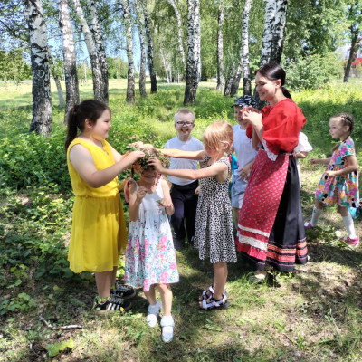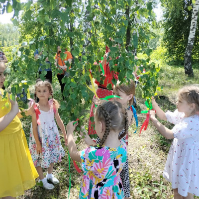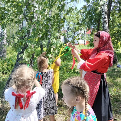 Ребята провели обряд завивания берёзы. Играли в традиционные игры на Троицу, пели песни, водили хороводы.