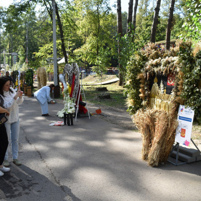 На аллее сердец заняла свое место инсталляция с изображением храма Серафима Саровского, являющегося жемчужиной Грибановского района. Изготовили ее мастера декоративно-прикладного творчества в технике соломки и украсили дубовыми листьями и пшеничными колосьями.