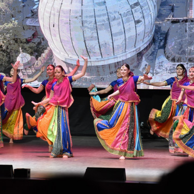 На сцене Городского дворца культуры состоялся настоящий многонациональный праздник. Зрители отправились в увлекательное авиапутешествие по странам мира.
