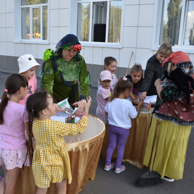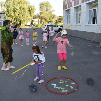 Дети проходили испытания на ловкость, скорость и сообразительность: рисовали домик Бабы Яги, ловили лягушек для Кикиморы, изображали сказочный лес.