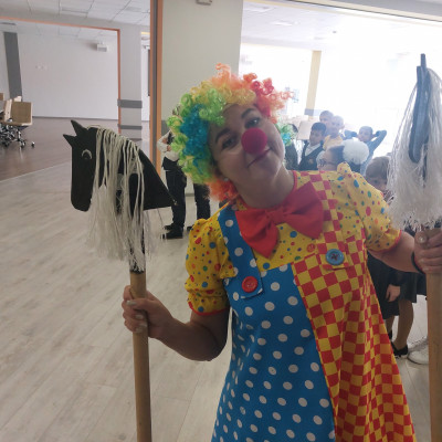 В гости к ребятам пришли клоуны Клёпа и Клякса. Все вместе сделали веселую зарядку. Но неожиданно Клякса потеряла свое хорошее настроение, и всем ребятам вместе пришлось отправиться на его поиски в цирк, где они смогли стать настоящими жонглерами, наездниками и фокусниками. После таких развлечений у Кляксы сразу нашлась ее «пропажа», и все в хорошем настроении станцевали веселый флешмоб.