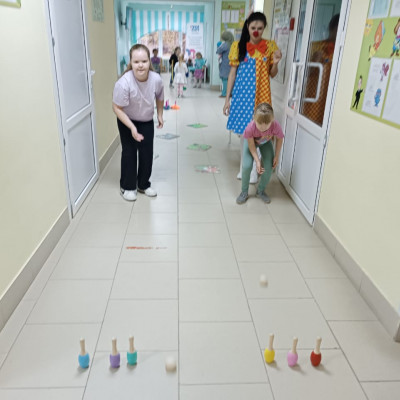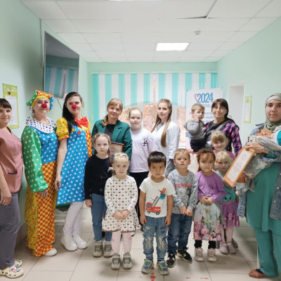 В гости к ребятам пришли клоуны Клёпа и Ириска, которые приготовили им много развлекательных игр. Дети и взрослые остались очень довольны такой неожиданной встрече с клоунами.