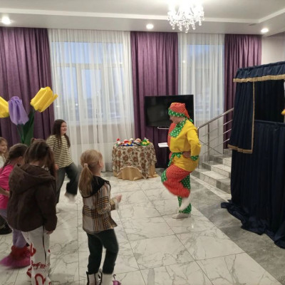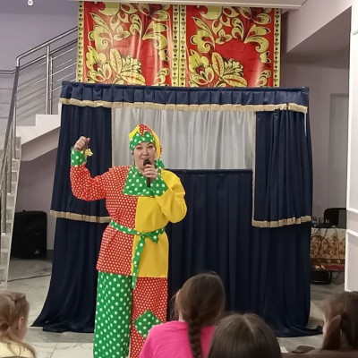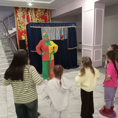 В фойе гостей встречал весёлый Петрушка, а затем вместе с Феей Театра ребята отправились в волшебную страну, где познакомились с главными секретами актёрского мастерства: мимикой, голосом и жестами.