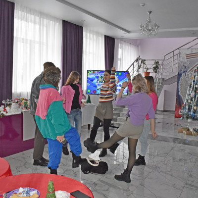 Предновогодняя атмосфера в стиле 90-х, исполнение новогодних песен и танцев, веселые новогодние конкурсы никого не оставили равнодушными. Участники огонька зарядились отличным настроением и получили массу положительных эмоций, принимая участие в веселых конкурсах.