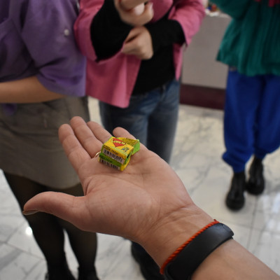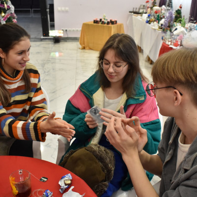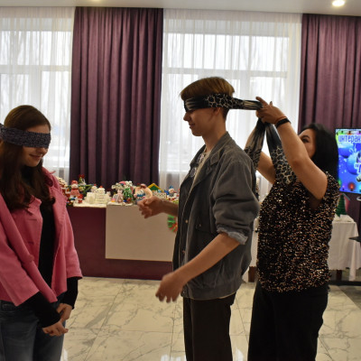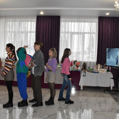 В конкурсе «Новогодняя красавица» ребятам предлагалось с закрытыми глазами украсить новогоднюю елку. В ходе конкурса «Повторяй за мной» команды должны были запомнить движения за дедом Морозом и повторить их перед участниками своей команды. А в конкурсе «Дуй и неси» соревновались по одному человеку от команды. Соперникам на скорость необходимо было перенести десять стаканчиком с одного стола на другой, используя воздушный шарик.