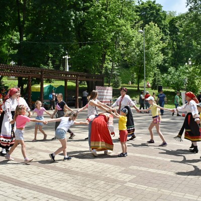 Для юных воронежцев развернулась «Площадь народных потех». Аниматоры Ирина Пальчунова и Оксана Трунова из Листопадовки поиграли в хороводные игры.