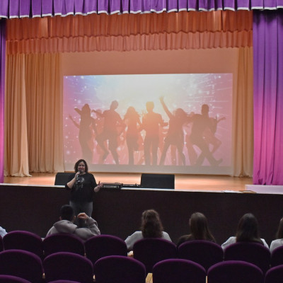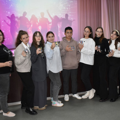 В игре приняли участие 2 команды. Ребята ответили на музыкальные вопросы различной сложности, отгадали фильмы и повторили танцевальные движения. Все участники получили сувениры на память.