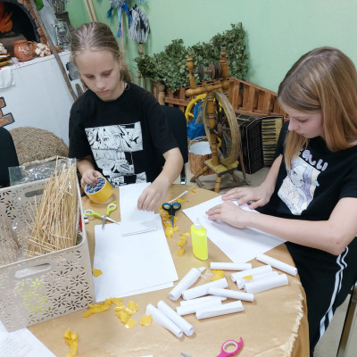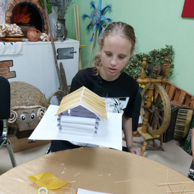 Участники мероприятия отгадывали старинные загадки, разгадывали ребусы, вспоминали пословицы, в которых выражена народная мудрость. Вели беседу о том, как жили наши дедушки и бабушки. Называли вещи крестьянского быта, которые окружали их в домах. Представляли, какие ранее были дома с соломенными крышами и своими руками пытались сделать их из бумаги, клея и соломы.