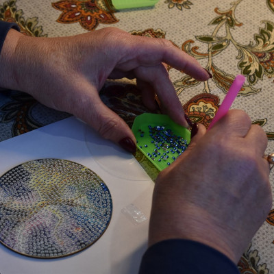 В преддверии Дня пожилого человека в Грибановском районном Доме культуры царила творческая атмосфера. Здесь прошел увлекательный мастер-класс, где все желающие смогли попробовать себя в создании подставок под горячее в завораживающей технике "Алмазная мозаика".