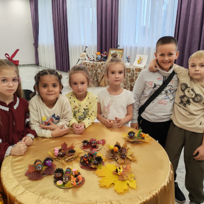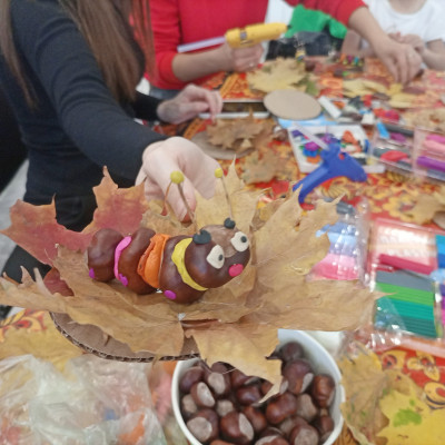 На мастер-классе дети мастерили осенние композиции из природного материала: каштанов, листьев, веточек и пластилина.