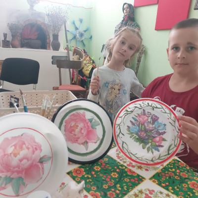 В Грибановском районном Доме культуры прошел мастер-класс для детей по декупажу. Для работы использовались трехслойные бумажные салфетки – один из самых популярных материалов в этом виде творчества. Участники познакомились с основными техниками декупажа, а затем собственными руками украсили тарелочку и покрыли изделие лаком, чтобы сохранить ее на долгое время и придать ей особый блеск.