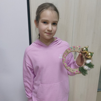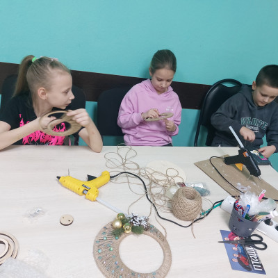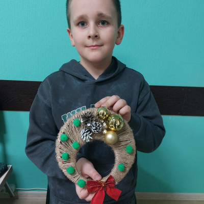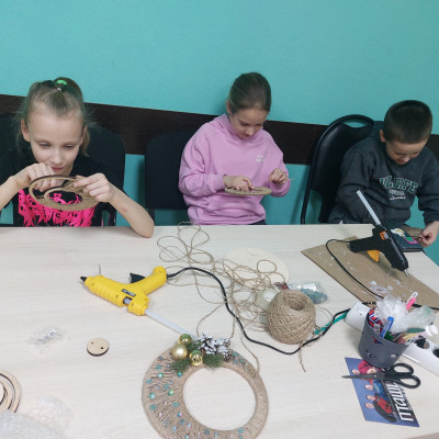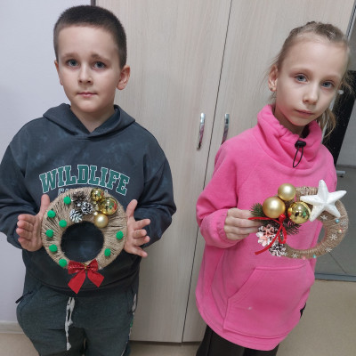 Участники кружка «Умей-ка» изготавливали свои поделки из деревянных колец и джутовой нити. Для украшения своего месяца они использовали ёлочные шары, еловые шишки и веточки, а также разноцветные бусины.