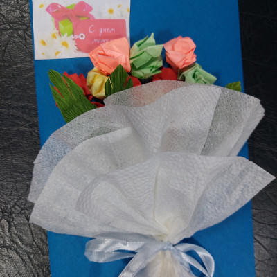 Участники кружка «Умей-ка» совместно со своим руководителем, изготовили открытки для своих мам. Для их украшения дети использовали цветную бумагу, клей, ленты и бумажные салфетки.