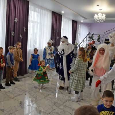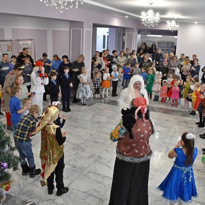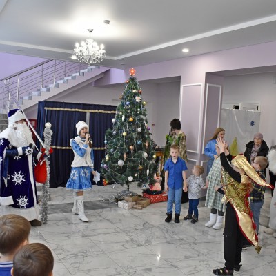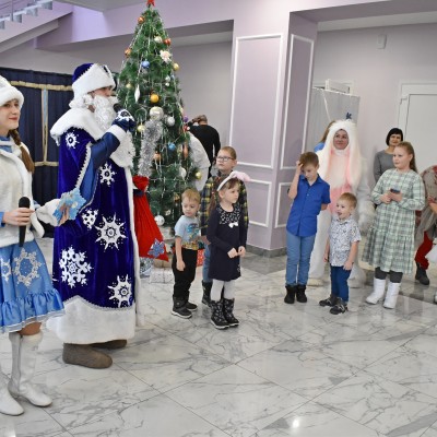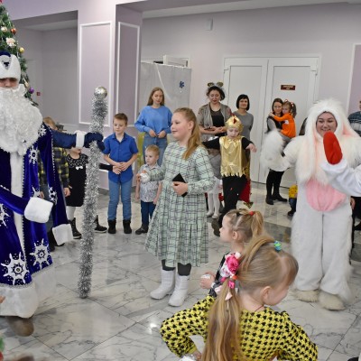 В районном Доме культуры прошел утренник, на котором сказочные персонажи: Дед Мороз и Снегурочка , символ наступившего нового года — Кролик, Снеговик, Баба Яга, Леший, Кикимора, весело отпраздновали Новый год. Ребята оказались в сказке, где играли, пели песни, разгадывали загадки и водили хоровод. В завершении праздника дети прочитали стихи, и получили сладкие подарки от Деда Мороза и Снегурочки.