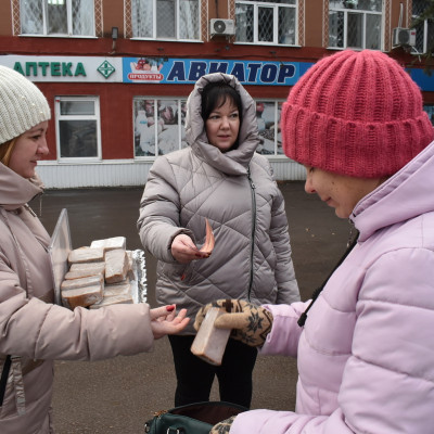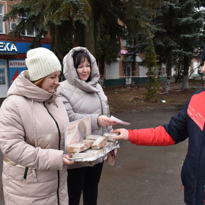 Участники акции узнали о блокадном хлебе, получили символический кусочек хлеба и памятку с описанием.