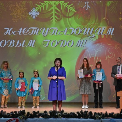 Начальник отдела по культуре Грибановского муниципального района Ольга Семенцова поздравила присутствующих в зале с наступающим Новым годом. На сцену были приглашены награждаемые дипломами лауреата областных и всероссийского конкурсов.