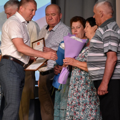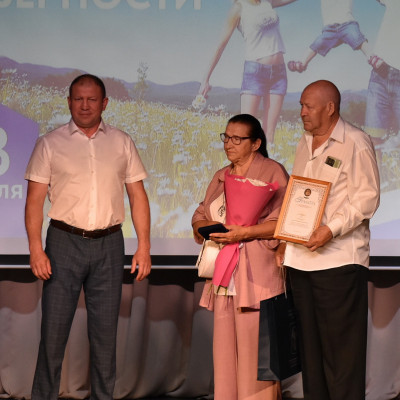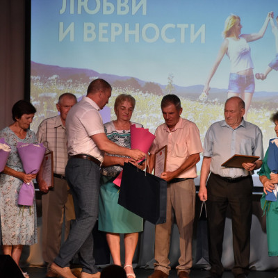 На праздник были приглашены семьи с большим стажем совместной жизни. Им были вручены благодарности, губернаторские адреса, подарки и цветы.
