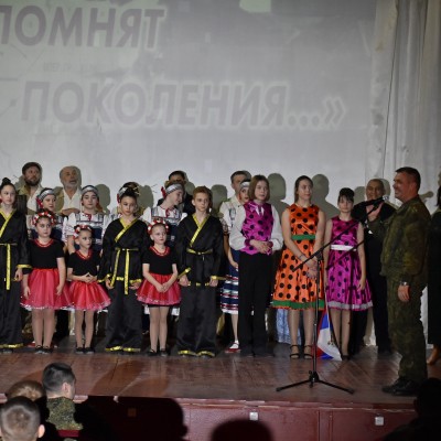 16 декабря в ФГКУ «76 ДОМ ОФИЦЕРОВ (ГАРНИЗОНА) МИНОБОРОНЫ РОССИИ» (Воронеж-45) состоялся праздничный концерт «Пусть помнят поколения...», организованный МКУК «Грибановский РДК». В мероприятии приняли участие коллективы и солисты художественной самодеятельности Грибановского муниципального района, а также обучающиеся МКУ ДО «Грибановская школа искусств». С приветственным словом к присутствующим обратились командир войсковой части 14254 полковник С.А. Вишняков и начальник отдела по культуре Грибановского муниципального района О.А. Семенцова.
