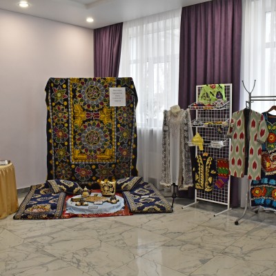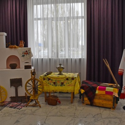 В фойе были оформлены тематические выставки: куклы в национальных костюмах, рисунки победителей районного конкурса «Моя Родина - Россия» предметы быта таджикского народа, уголок крестьянского быта, книжная выставка «И только в единстве сила России» МКУК «ЦБС Грибановского городского поселения».