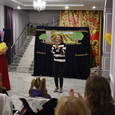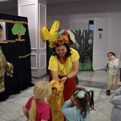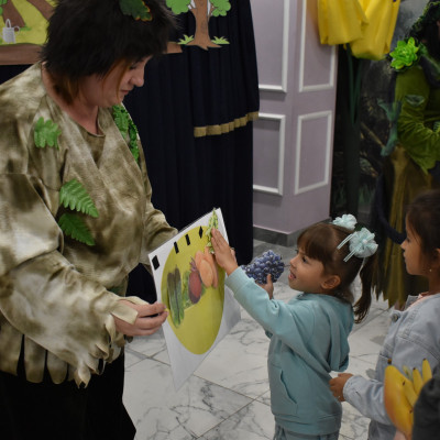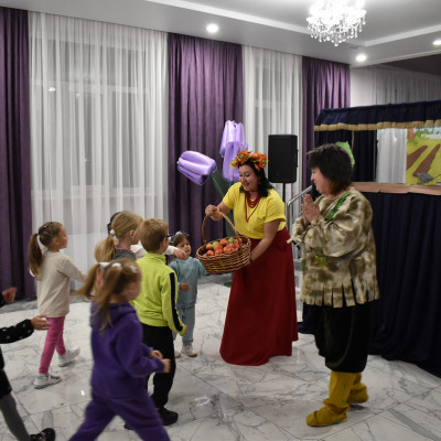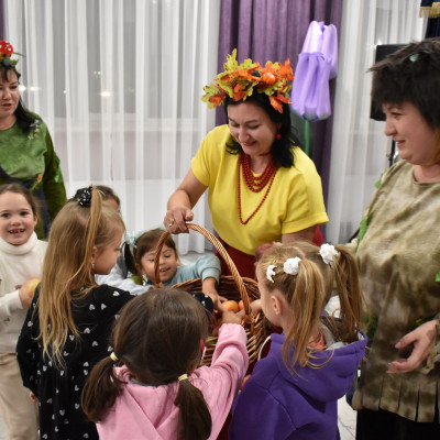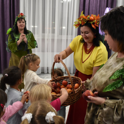 Сказочные персонажи, Осень, Леший и Кикимора, погрузили всех участников яркую, осеннюю атмосферу.