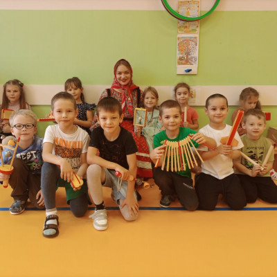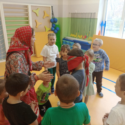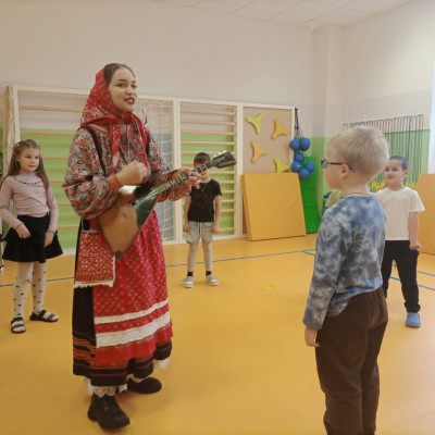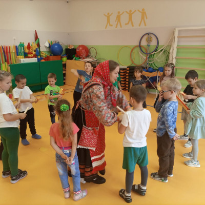Руководитель клубного формирования, Сорокина Юлия Николаевна пришла рассказать и поиграть с детьми подготовительной группы "Фантазеры" в русские традиционные народные игры.