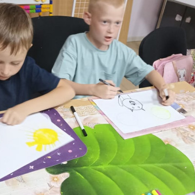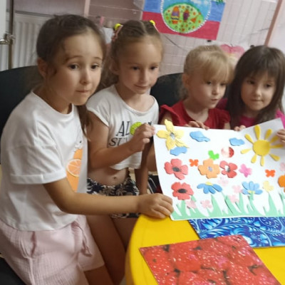 Ребята активно участвовали в таких играх, как" Дорисуй животное", "Что можно нарисовать из круга". Две команды дружно отвечали на вопросы и сделали яркие аппликации на летнюю тему.