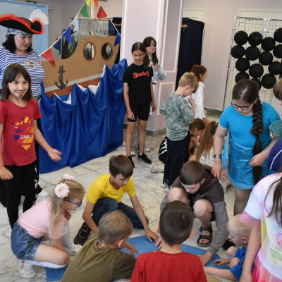 Задорные Пираты встретили ребят и погрузили их в атмосферу праздника, подготовив пиратские конкурсы, игры и танцы.