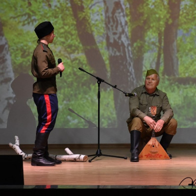 В Гала-концерте фестиваля народного творчества «Салют Победы» от Грибановского района приняли участие Иван Бодренко и Виктор Куксин с театрализованной миниатюрой «Солдаты на привале» и Василий Кривов с Фланкировкой "Казачьи забавы".