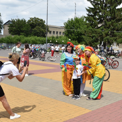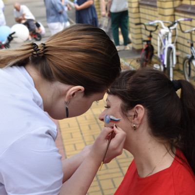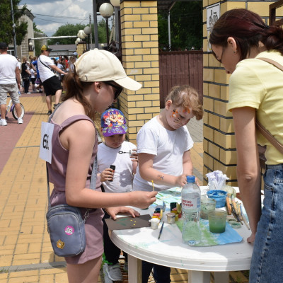 Праздничная программа включала в себя игровые площадки, где можно было сделать красочное фото с клоунами, нанести фейс-арт, поучаствовать в мастер-классе по рисованию, раскрасить асфальт мелками. А также поучаствовать в лотерее и выиграть главный приз — велосипед.