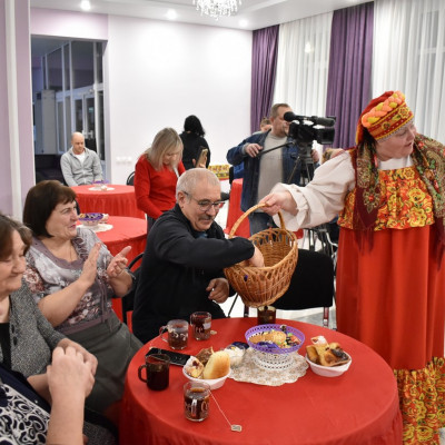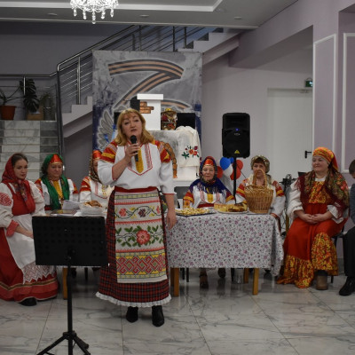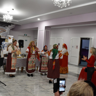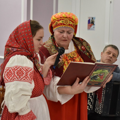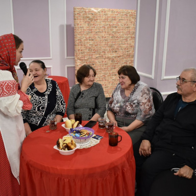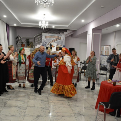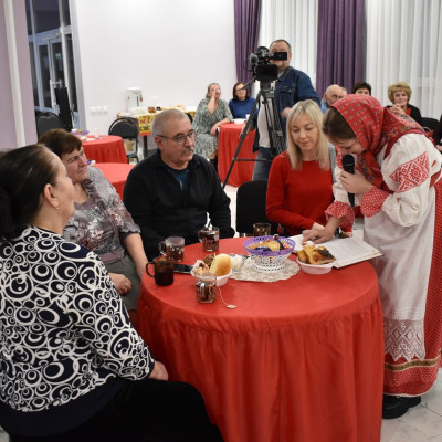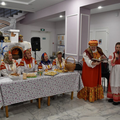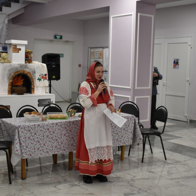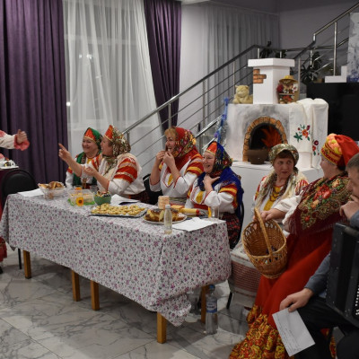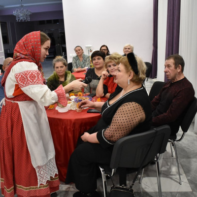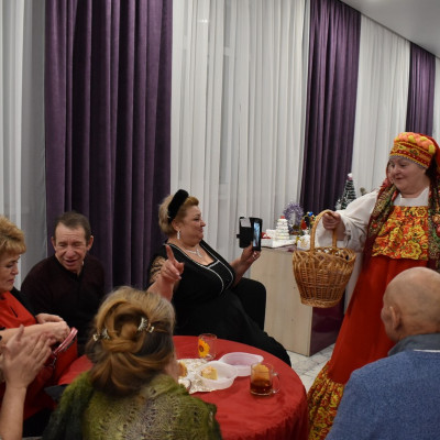 Руководитель ансамбля, Сорокина Юлия Николаевна, провела шуточное гадание со зрителями. Так же гости поучавствовали в различных конкурсах, где показали свои творческие способности, пели частушки, плясали и рассказывали стихи.