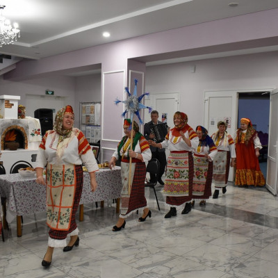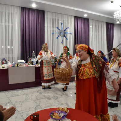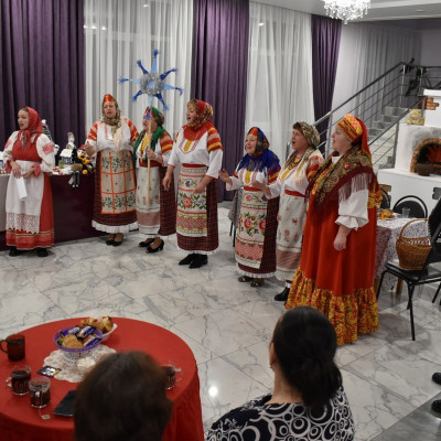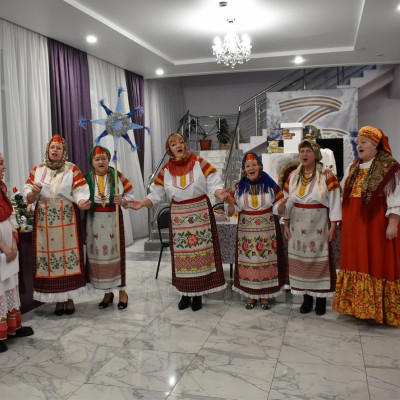 В ходе мероприятия ансамбль показал гостям, как в старину ходили колядовщики по домам, славили хозяев, исполняли традиционные песни "колядки".