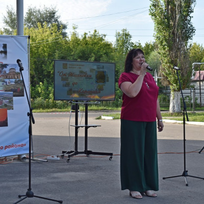 Программа началась с трогательного стихотворения местной поэтессы Натальи Будаевой «Постою подольше на пригорке», а на экране развернулась захватывающая панорама Нижнего Карачана с высоты птичьего полета.