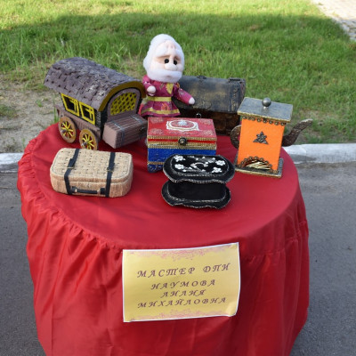 На выставках были представлены удивительные работы мастеров декоративно-прикладного творчества Вязниковой Т.В. и Наумовой Л.М., а также уникальные изделия из дерева от местного бондаря Кортунова В.В.