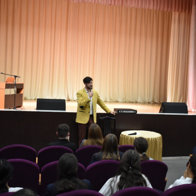 Особое внимание было уделено музыкальному театру. Актёр объяснил, чем он отличается от драматического театра, как создаётся музыкальное сопровождение спектаклей и какую роль играет музыка в создании атмосферы. Также он рассказал о работе над ролями в музыкальных постановках, о том, как вживаться в образ и передавать эмоции через пение и танец, исполнил произведения из известных мюзиклов.