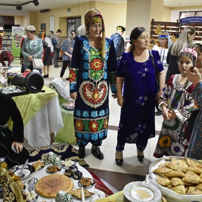В фойе районного дома культуры развернулась выставочная экспозиция, отражающая быт и культуру народов, проживающих в Воронежской области. Мукарам Мухтаровна Ниёзова и Саёра Кадировна Ходжаева, представители Таджикистана, рассказали присутствующим об обычаях, культуре таджикского народа, а также угостили всех национальными блюдами: самбусой, таджикским пловом, чак-чаком, куртом.