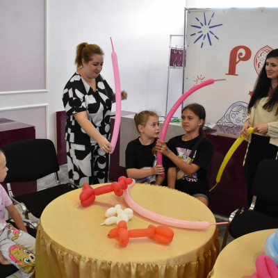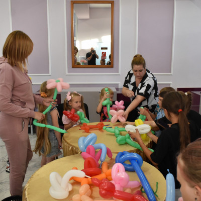 Гости пришли целыми семьями. Мама и папы, бабушки и дедушки окунулись в атмосферу 80х, 90х годов своей молодости и юности. Для ребят были организованы площадки: можно было порисовать, а также принять участие в мастер-классе по созданию из воздушных шаров различных фигур: цветы, меч, лебедь и др.