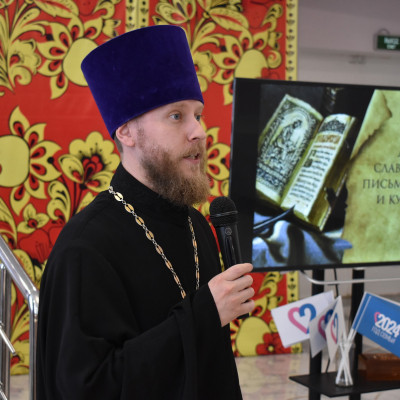 Так же отец Ярослав обратился к присутствующим по поводу наступающего праздника, Дня славянской письменности и культуры, приуроченного ко Дню памяти святых равноапостольных братьев Кирилла и Мефодия.