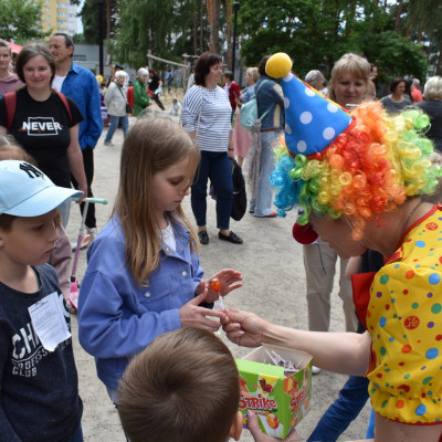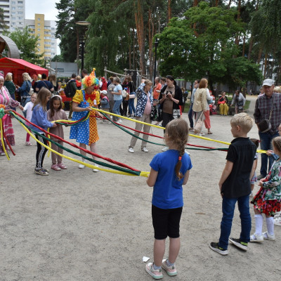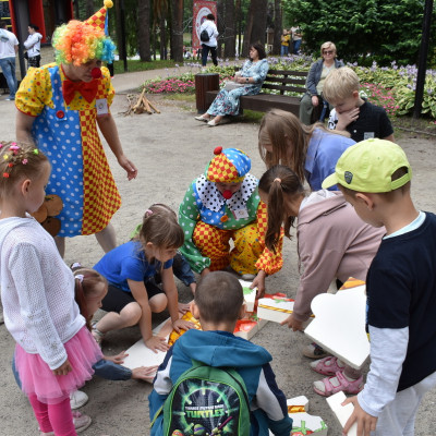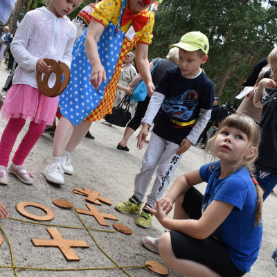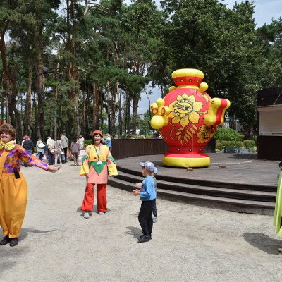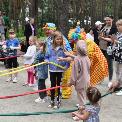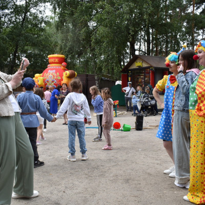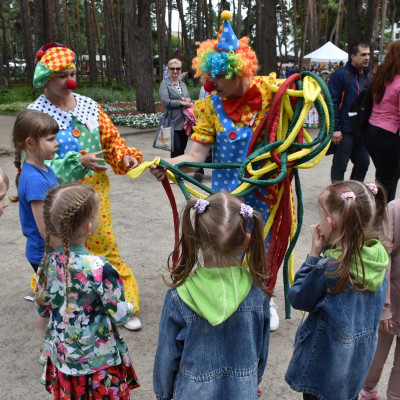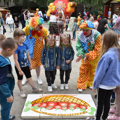 На интерактивной площадке «Разудалые потехи» в качестве аниматоров-клоунов развлекали детей работники районного Дома культуры Ольга Еремина и Татьяна Ерофеева.