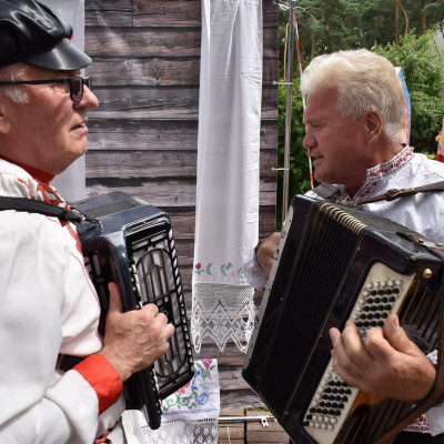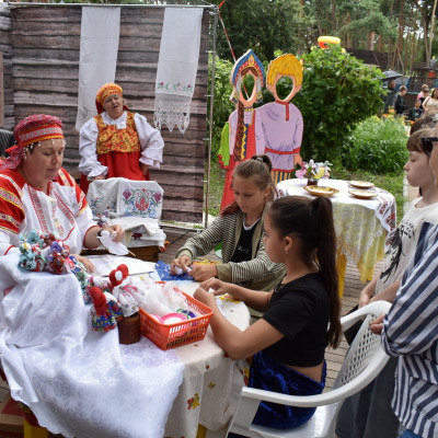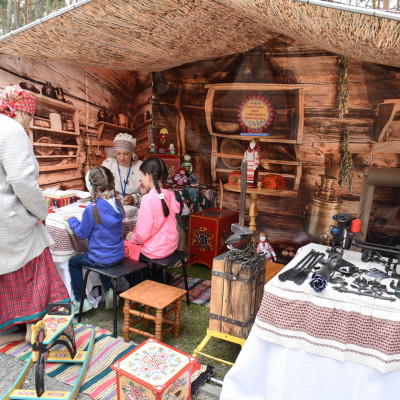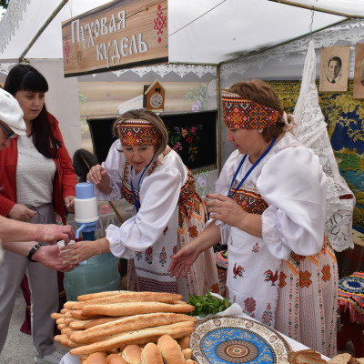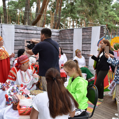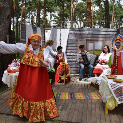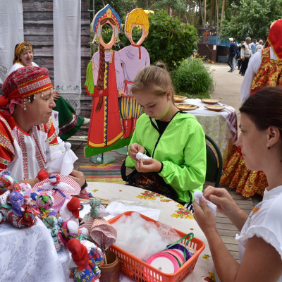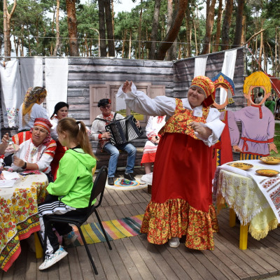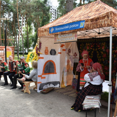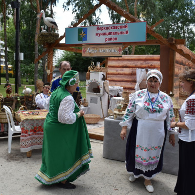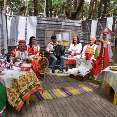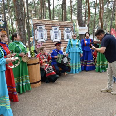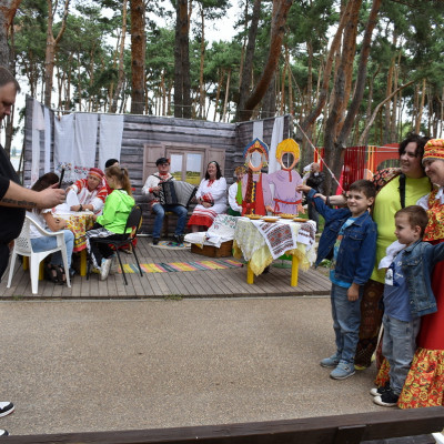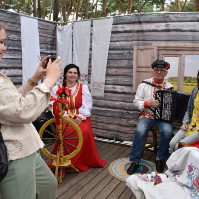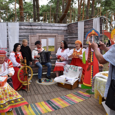 Интерактивную фотозону под музыкальный аккомпанемент Виктора Куксина представила творческая группа в составе Елены Шараповой (МКУК «ЦКД МИР»), Светланы Шаршовой (МКУК Алексеевского сельского поселения «ЦДИ»), Натальи Куксиной, Светланы Ковязиной, Кристины Мешковой (МКУК «Грибановский РДК»). Здесь зрители могли познакомиться с инсталляцией крестьянской избы с утварью, сфотографироваться у тантамарески в образе жениха и невесты, посидеть за прялкой, сделать своими руками куклу-оберег и спеть любимые песни под баян.