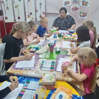 Дети, посещающие изостудию «Акварелька», отгадывали загадки, дружно отвечали на шуточные вопросы, принимали активное участие в конкурсе «Отгадай и нарисуй», где каждый участник проявил своё творчество и фантазию. Также, используя методы креативного рисования, разукрасили красивое летнее платье. Было интересно и весело. Все ребята получили сладкие подарки и хорошее летнее настроение.