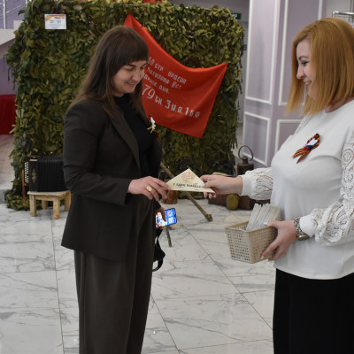 В честь этого символа памяти сотрудники Грибановского районного Дома культуры создали фронтовые треугольники, наполнили их стихами о войне и Победе и подарили жителям поселка и района.